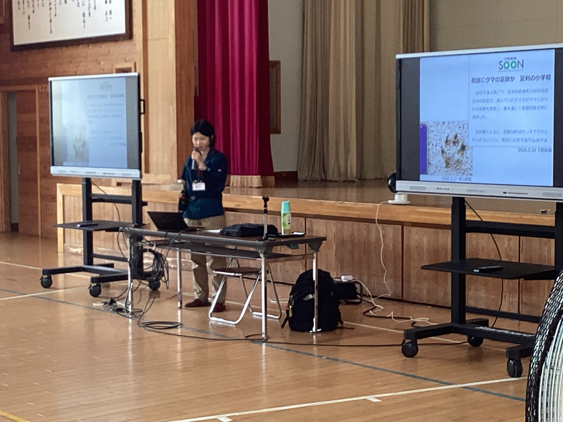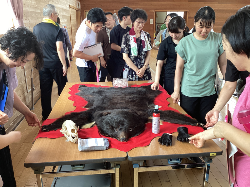 8月4日(月)秋田県自然保護課職員の方を講師に迎え、熊の生態と被害対策についての職員研修会を行いました。昨今、熊の出没が多発し、人との距離が近くなってきており、大変興味深い研修会となりました。講話では、熊の生態について・出会わないために・出会ってしまったらという観点からスライドを通してお話しいただき、熊は防御目的での事故が多く、遭遇を未然に防ぐために人の存在を知らせることは、とても大事であることを学びました。学校内外での安全確保に向けた行動として、誘因物の除去、周辺の草刈り、除伐など見通しの良い環境整備をし、熊を寄せ付けないこと、また出没情報の共有などの対策を学びました。私たちが正しい知識をもち、熊と遭遇しないよう、普段からしっかり対応し、うまく棲み分け共存していくために、これまで以上に積極的な被害防止策を心掛けたいと再確認しました。