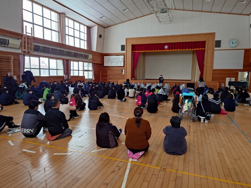 1月20日(火)に職員・児童生徒への予告なしの避難訓練(緊急地震速報訓練)を行いました。11月に続いて2回目の予告なしの訓練となり、今回は大曲消防署から4名の署員の方に来ていただき、避難訓練の様子を見てもらいました。講評では、「学校全体として、慌てず落ち着いて避難できていてすばらしい。命を守ることを一番に、これからも緊急時に備えてください」とお話をいただきました。これからも、緊急時に落ち着いて行動できるように訓練を重ねていきます。