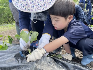 - 毎年、大曲婦人会の皆さんや地域の方と一緒にさつまいもの苗を植えたり、収穫して食べたりしています。植えたさつまいもは、主に5・6年生が中心になり、大切に育てています。今年度も、「ほくほくまつり」で大曲婦人会の皆さんや地域の方を招待し、収穫を喜び合いながら美味しいさつまいをいただきました。